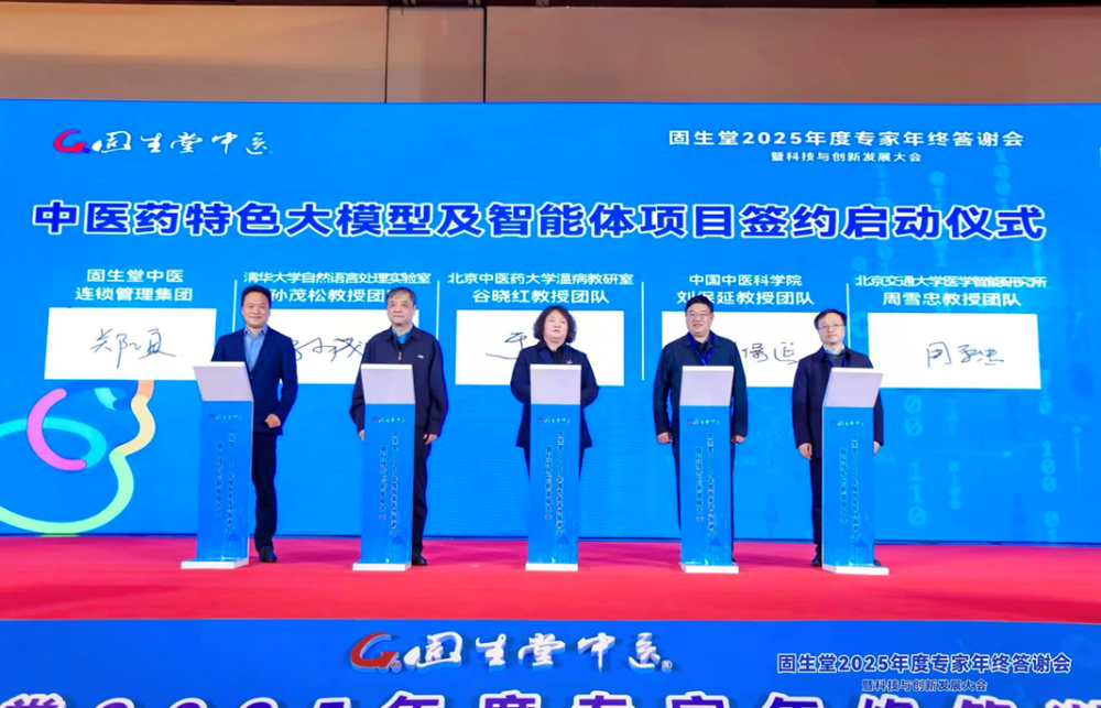 会议现场,固生堂宣布与四大顶尖科研团队——清华大学孙茂松教授团队、北京中医药大学谷晓红教授团队、中国中医科学院刘保延教授团队、北京交通大学周雪忠教授团队达成深度合作,共同研发中医药特色大模型及智能体。